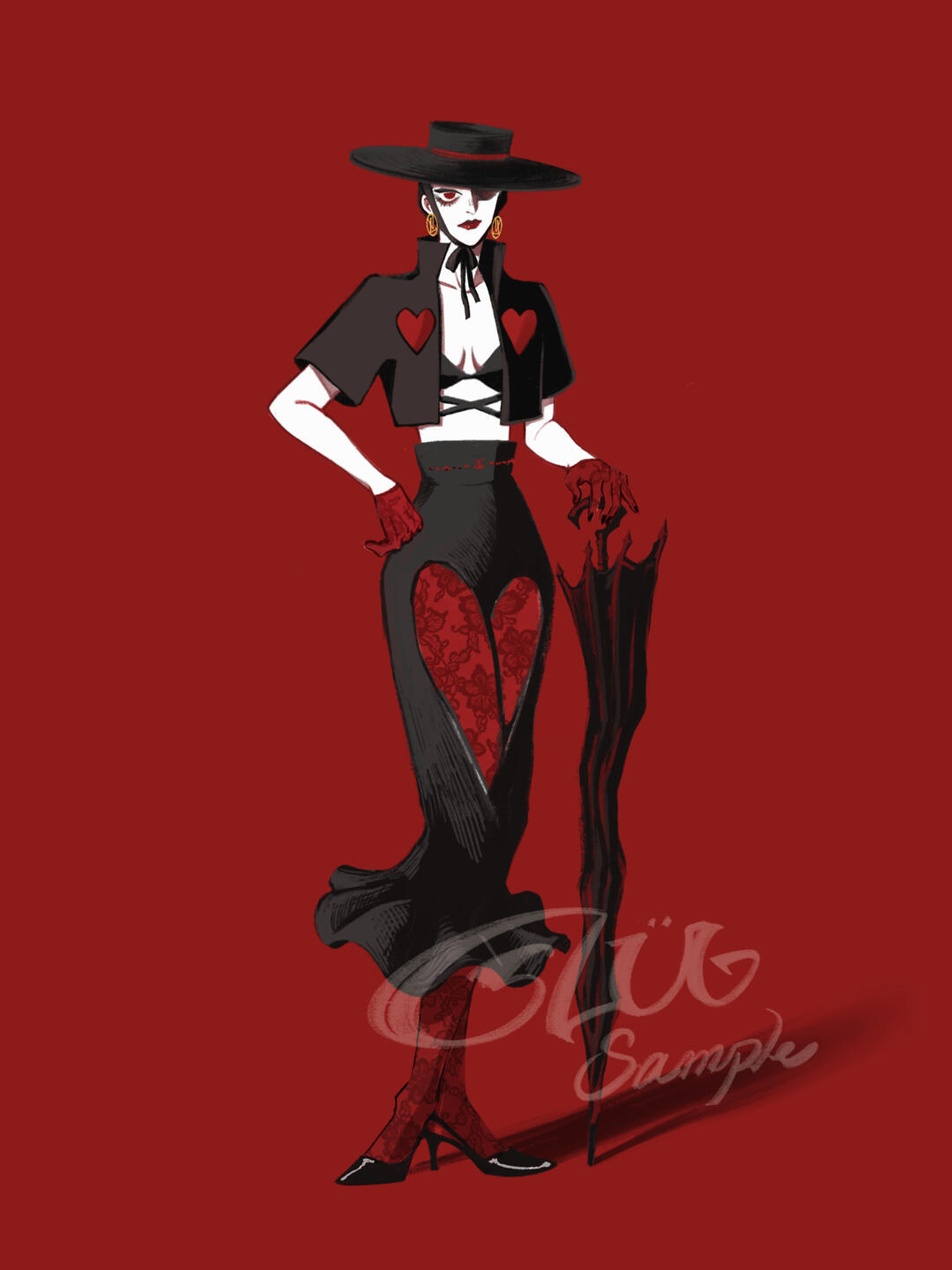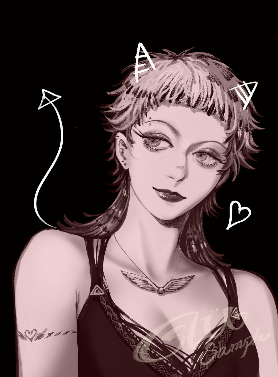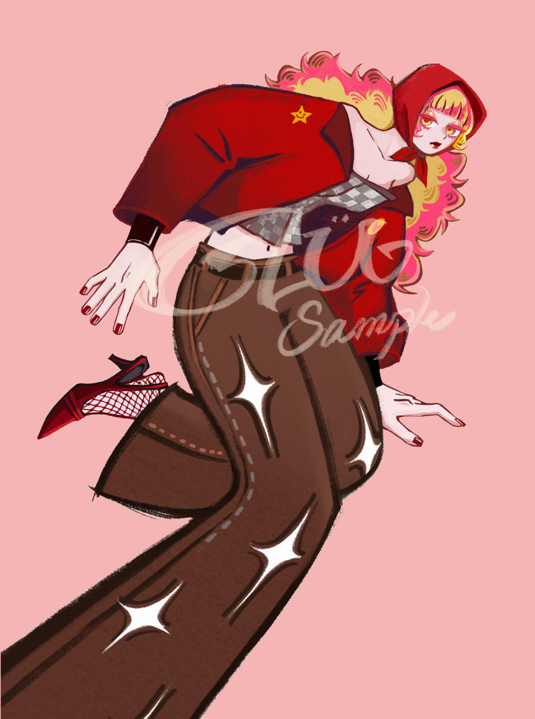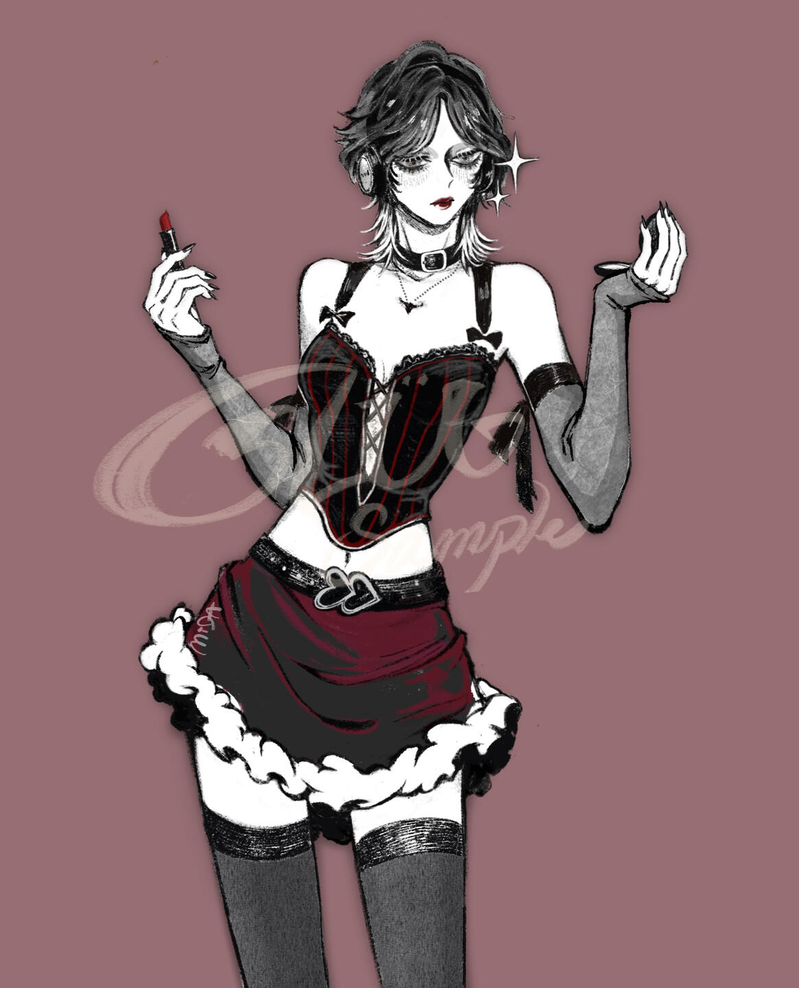 風格偏好冷酷、野性、中性或唯美風格角色。手繪感、素描線條、單色系為主,偶爾適度配色,但不會太繽紛。